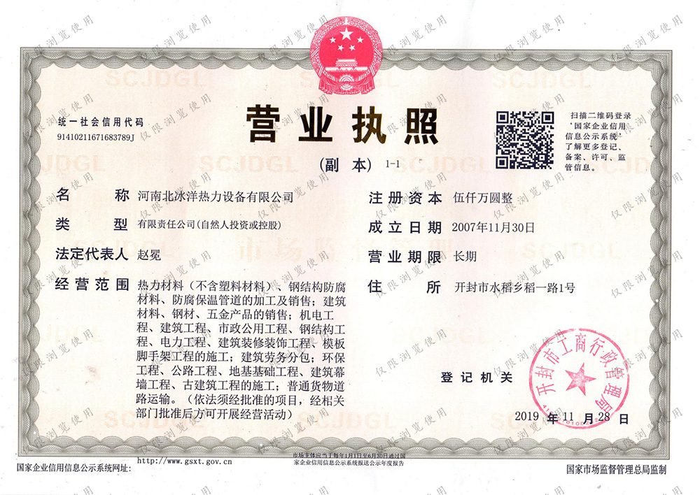 河南北冰洋熱力設(shè)備有限公司,成立于二00七年,公司注冊(cè)資金伍仟萬元。是從事高溫蒸汽直埋敷設(shè)工程、研究、設(shè)計(jì)、生產(chǎn)、施工為一體的專業(yè)性公司。是擁有建設(shè)廳認(rèn)定的防腐保溫施工二級(jí)資質(zhì)企業(yè)。